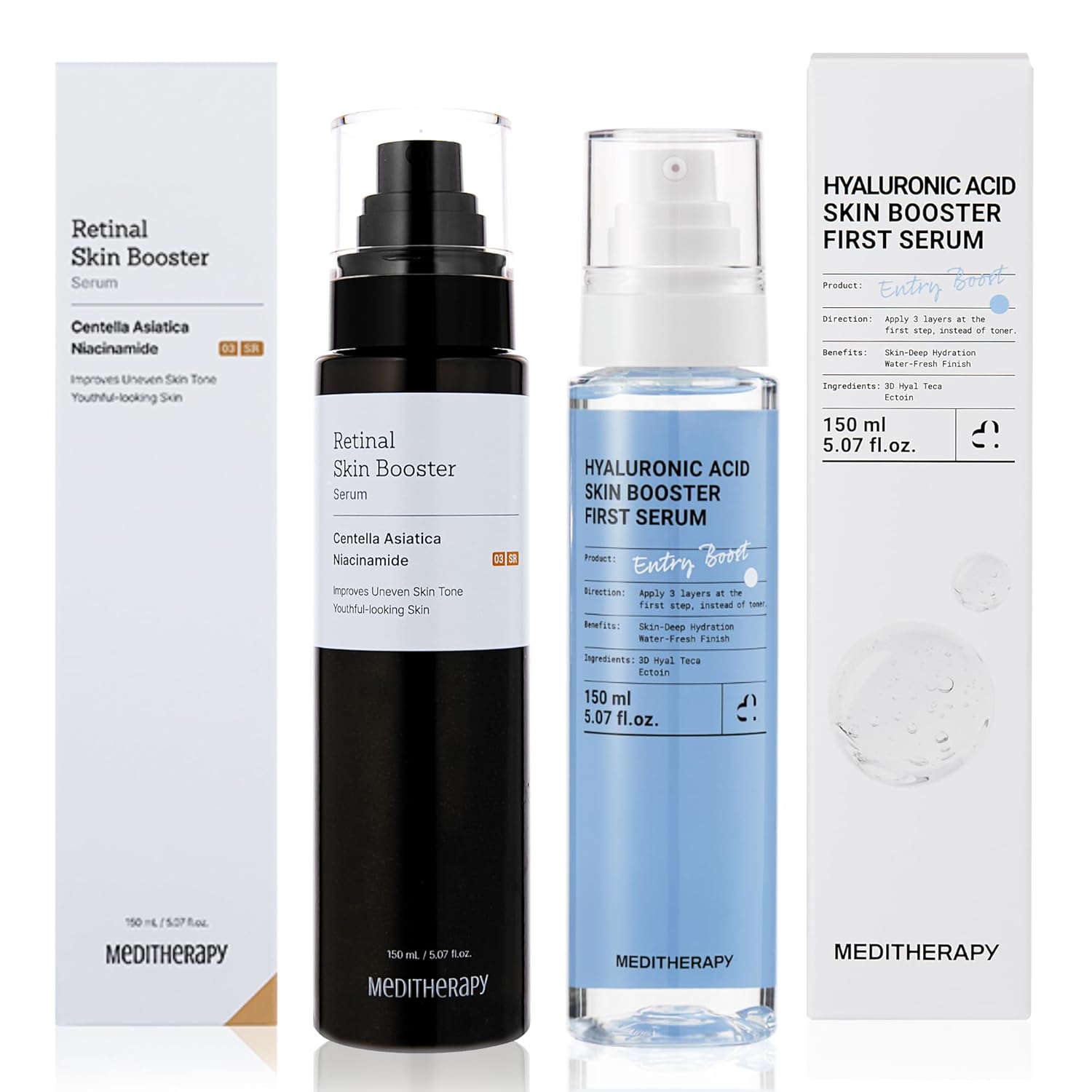 ست بوستر سرم رتینال و هیالو اسید جوانساز آبرسان و ضدلک مدی تراپی-The Glass Skin Booster Duo – Retinal Skin Booster Serum + Ultra-Hydrating Hyaluronic Acid Serum