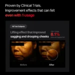 بهبودهای قابل توجه در نواحی چشم، خطوط لبخند و افتادگی فک تنها پس از یک بار استفاده، که توسط آزمایشهای انسانی نیز تأیید شده است.