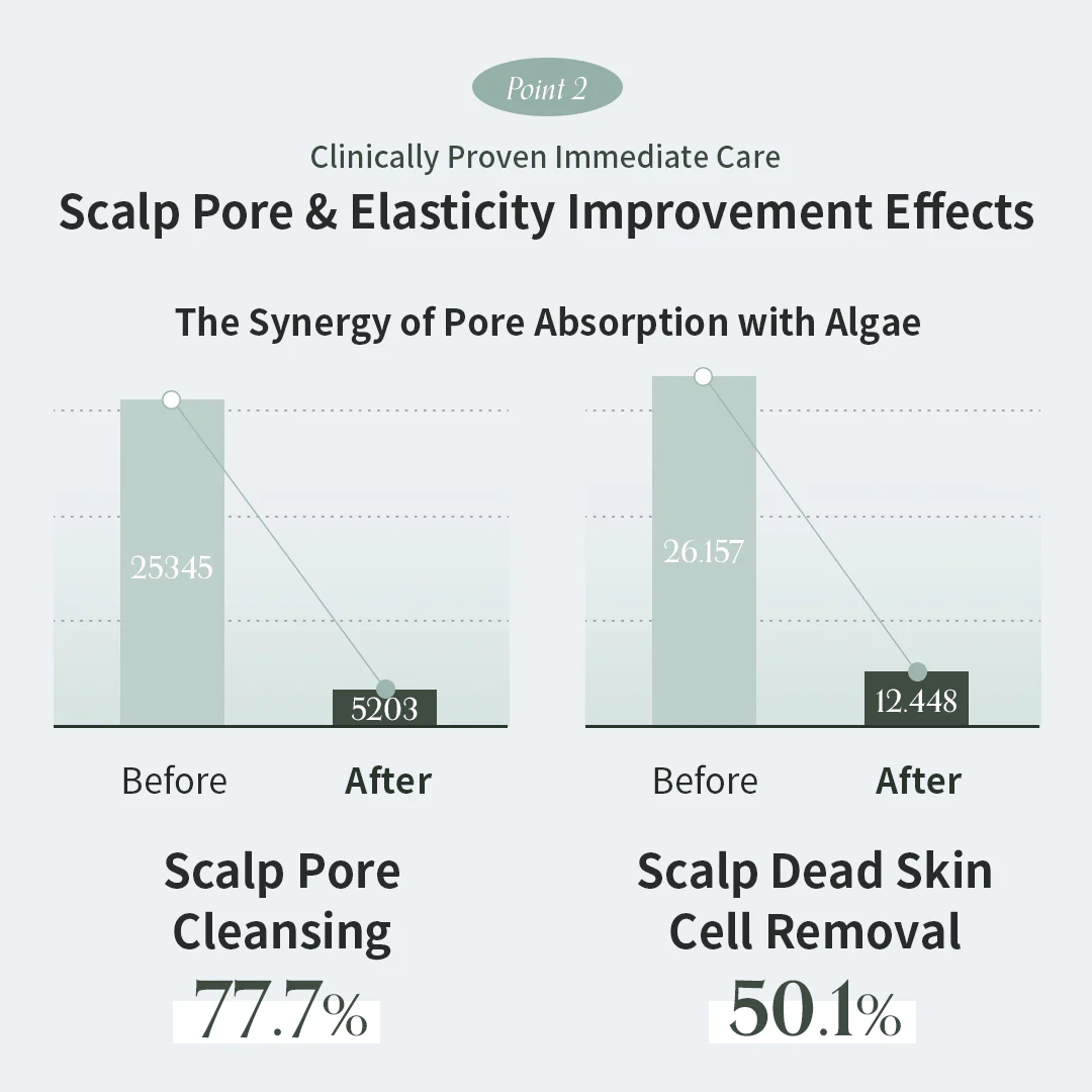 کلپ و جلبک دریایی برداشت شده و بازیافتی محلی، سرشار از مواد معدنی دریایی و اسید آلژنیک، به پاکسازی منافذ پوست سر، بازیابی خاصیت ارتجاعی و تقویت موهای نازک کمک میکنند.