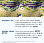 | نتایج بالینی | پس از یک بار استفاده: بهبود حجم پف چشم: تا ۱۵۶.۶۷٪ بهبود چین و چروک زیر چشم: تا ۱۲۱.۳۲٪ افزایش حجم زیر چشم: تا ۱۵۴.۴۵٪ روشن شدن حلقههای تیره دور چشم: تا ۱۰۳.۹۵٪پس از ۴ هفته استفاده: بهبود حجم پف چشم: تا ۱۴۲.۷۰٪ بهبود چین و چروک زیر چشم: تا ۱۱۱.۴۰٪ افزایش حجم زیر چشم: تا ۱۲۷.۰۵٪ روشن شدن حلقههای تیره دور چشم: تا ۱۰۰.۹۲٪ |